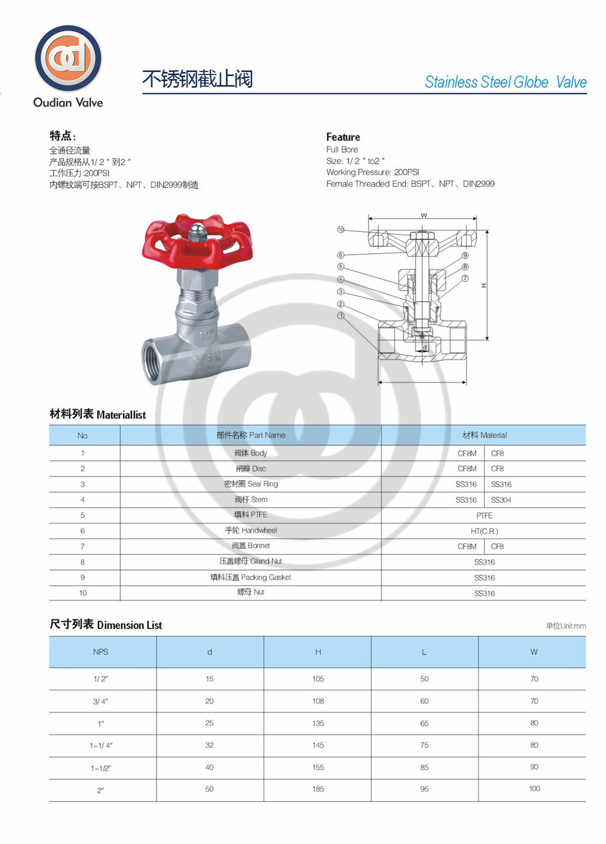 产品详情:不锈钢内丝截止阀