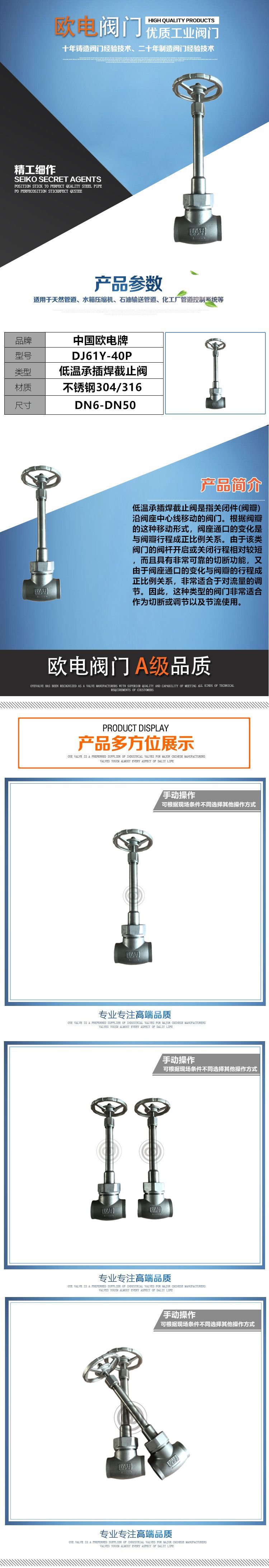 DN40低温焊接阀是指其关闭部分(阀瓣)沿阀座中心线运动的阀,根据阀瓣的这种移动形式,阀座端口的变化与阀瓣行程成正比由于这种类别的阀杆的开启或关闭行程相对较短,并且具十分精确的切断机能,并且因为阀座端口的变化与阀的行程成正比圆盘,十分适当流量调节,因此这种类别的阀门十分合适作为截止或调节和节流用处。