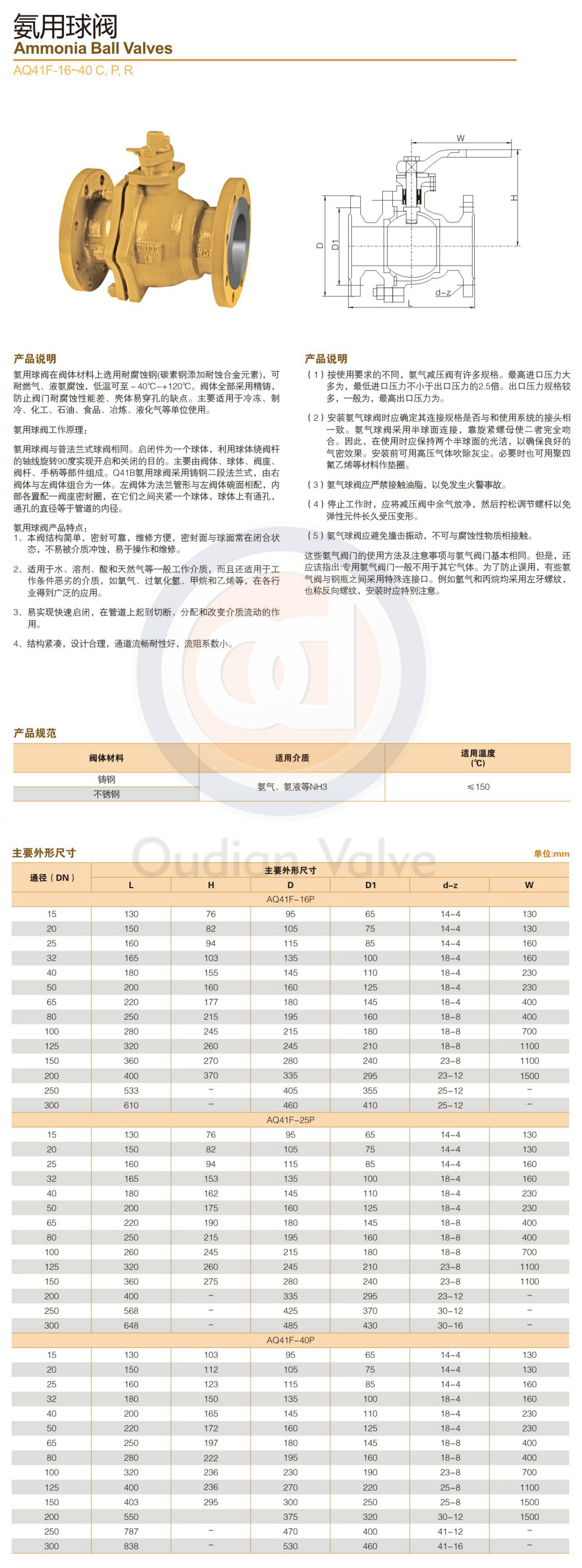 氨用球阀产品型号:aq41f-16c,aq41f-25c,aq41f-40c;aq41f-16p,aq41f-25p,aq41f-40p;
