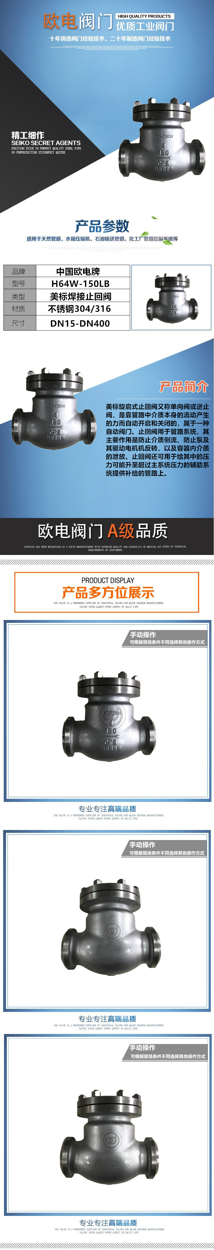 4.美标止回阀:一种阀,其阀瓣沿阀体的中心线滑动。在线止回阀是一种新型的阀。它体积小,重量轻,加工技术好。它是止回阀的发展方向之一,但其流体阻力系数略大于旋启式止回阀。