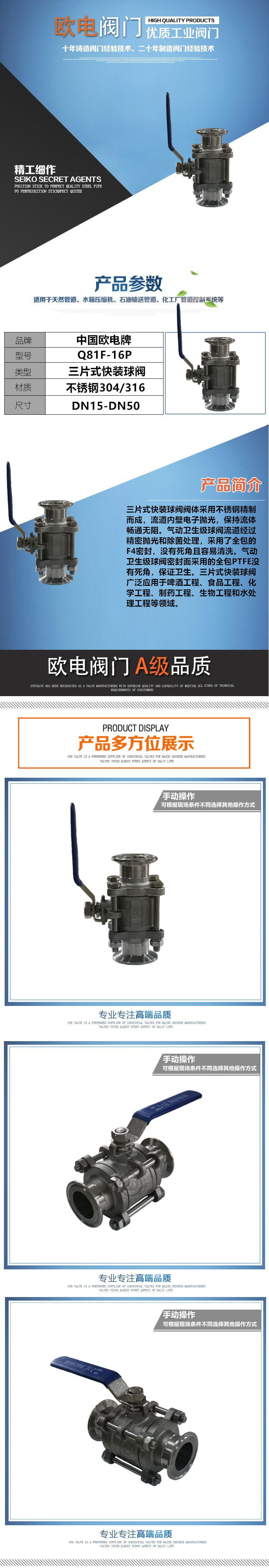产品详情:三件式快装球阀