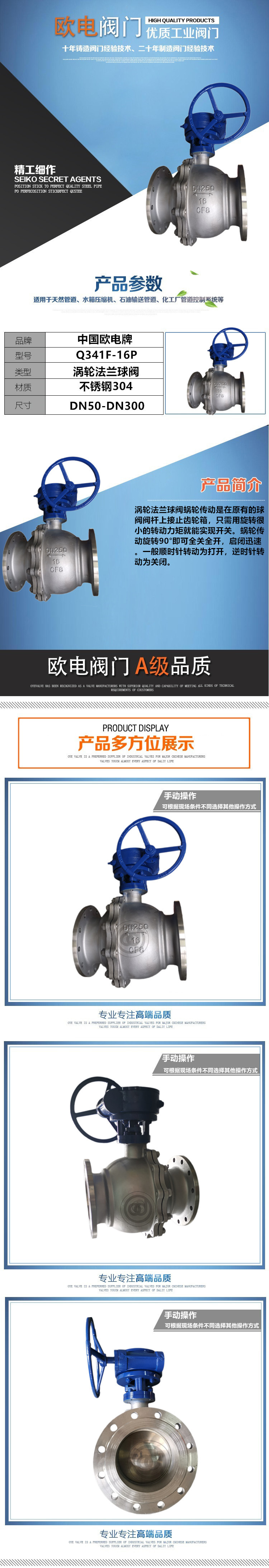 涡轮法兰球阀蜗轮蜗杆传动是将变速箱联接到原始球阀杆上,仅需旋转很小的扭矩就可以实现开关,蜗轮蜗杆传动可以旋转90°全然关闭并全然打开,打开和关闭快速。一般而言顺时针旋转打开,逆时针旋转关闭。