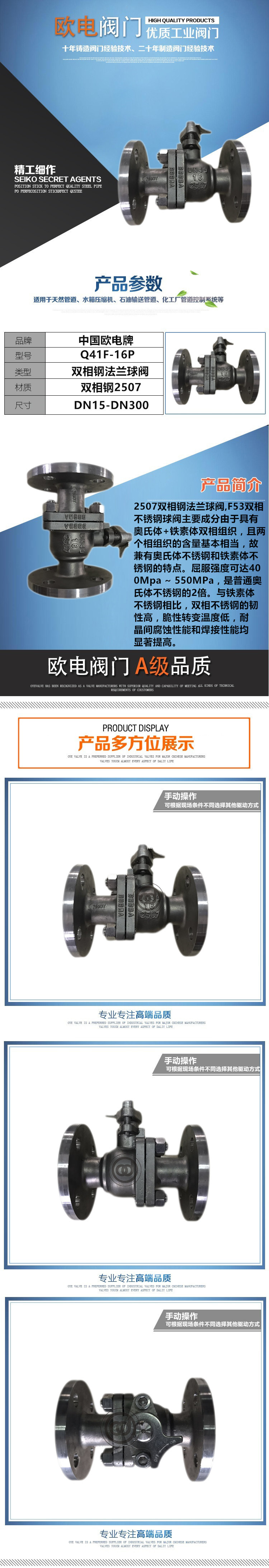 2507双相钢法兰球阀,F53duplex不锈钢球阀用以炼油,化肥,造纸,原油,化工等行业,具有耐海水,高温和浓硝酸等性能。