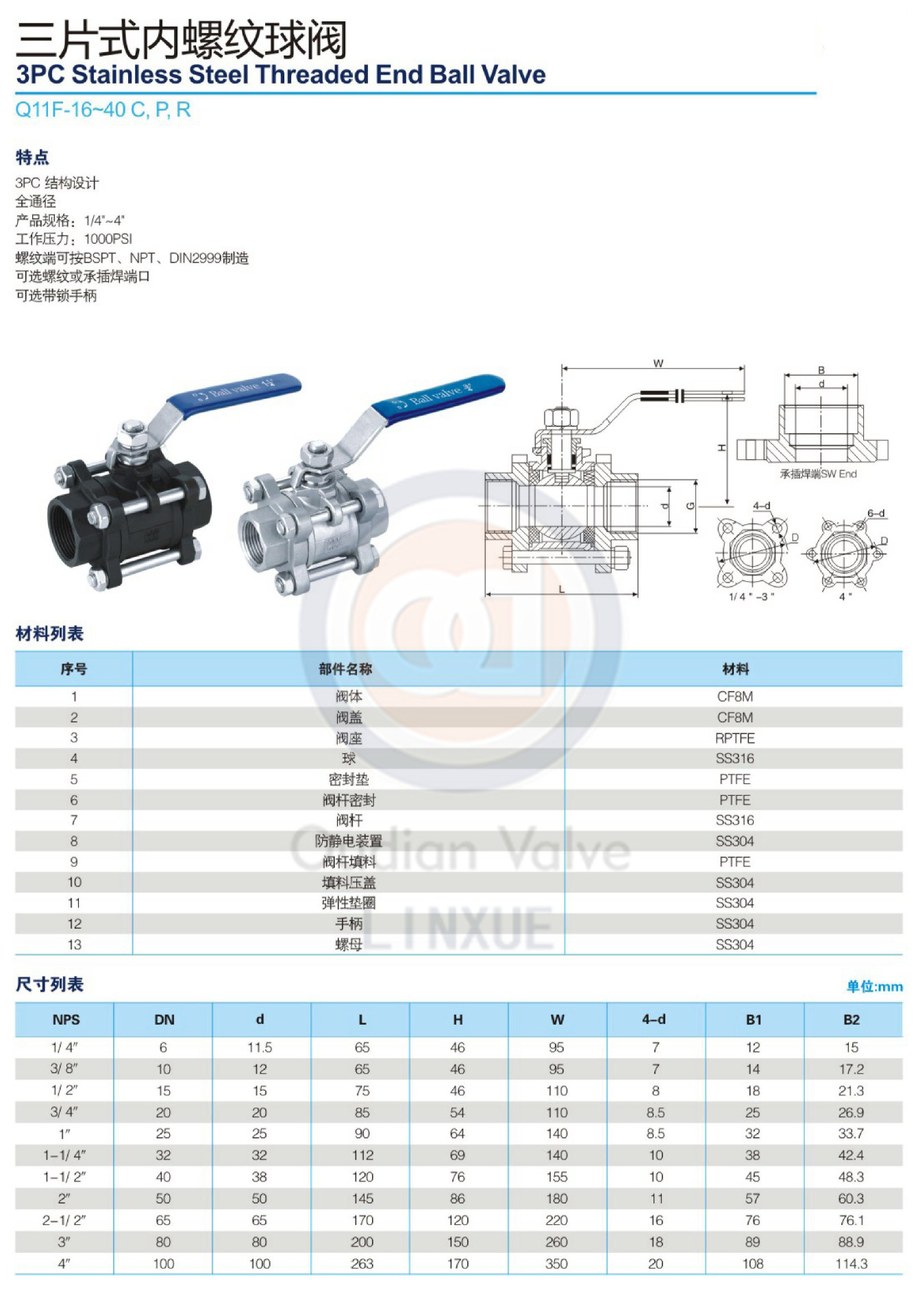 q11f-25/40型液化气球阀close球体环绕阀体的中心线旋转以实现阀的打开和关闭。液化气球阀使用成型聚四氟乙烯填料,手柄操作扭矩安定,驱动o型圈密封用于预防外部杂质进入阀门并维持阀门的长期密封性能.o型圈密封可用于手动,蜗轮,气动,电动等模式。大于DN150的球阀由蜗轮驱动,大于DN200的球阀用到固定球阀,适用于一般工作介质,例如天然气管道,液化石油气管道,天然气管道,天然气管道,不锈钢阀体也适用于氧气,过氧化氢,甲烷和,乙烯等恶劣工作条件的介质,普遍用于各种行业。