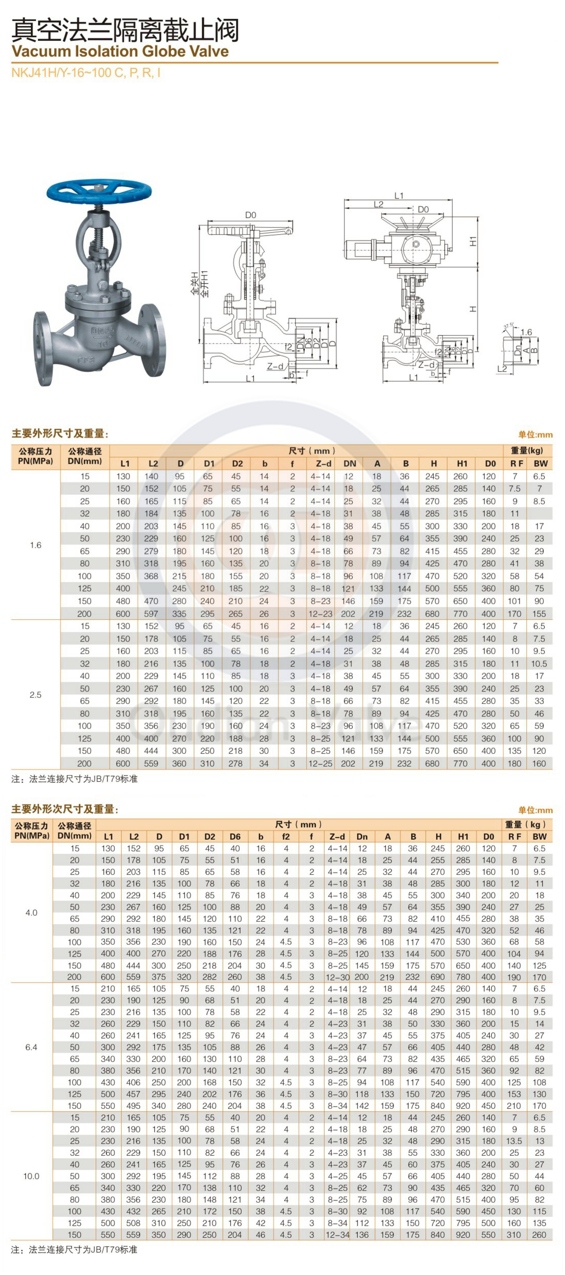 - 公称通径15-600mm