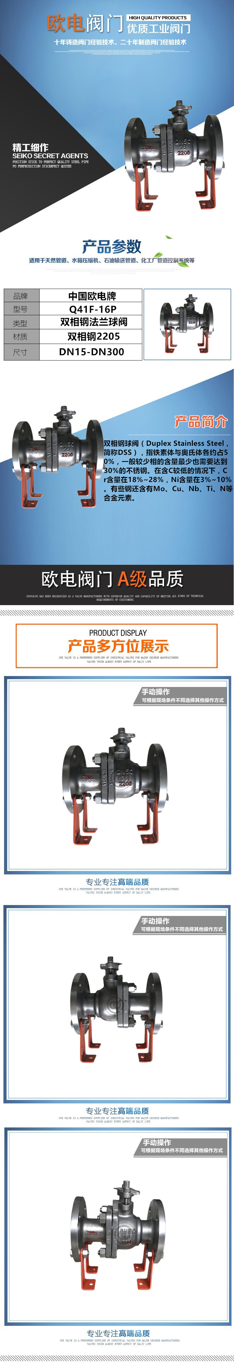1.2205法兰球阀双相钢球阀所用到的材料满足相应的ASTM标准中指定的锻件,棒和工件的要求。这些材料的来源来自日本,美国或欧洲发达国家;并向其发给原产地验证。