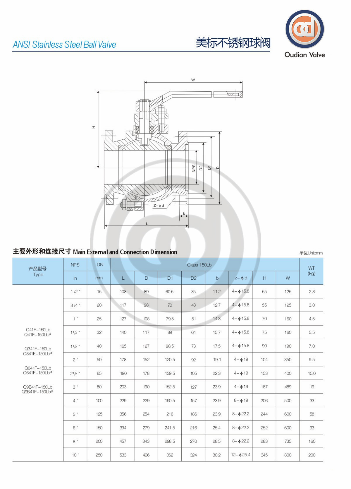 中国欧电阀Q41F美标法兰球阀的设计和制造基准是API600,API602,主要用于切断,分配和变动管道中介质的流动方向。sol精细铸造阀体,阀体表面细致美观,无须打磨,使用防静电,耐火构造设计。阀体和其他组件由优质不锈钢制成,并经过酸洗和钝化处理。为了展开检查和测试,采用不含油脂的纯自来水开展高压密封测试。经过上述特别工艺处置后,这种球阀不仅运转迅速,灵巧,流阻小,安全精确,用到寿命长(密封副的磨损小)。