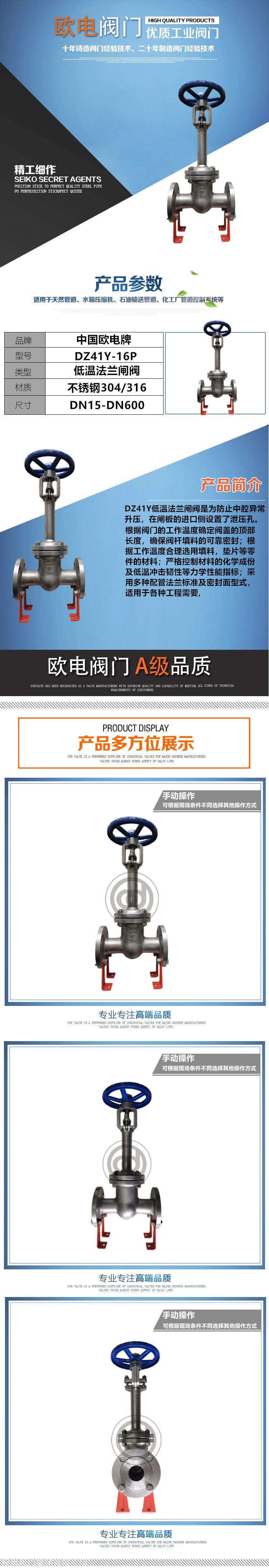 低温闸阀的启闭件是闸板,闸板的运动方向垂直于流体的方向,该闸阀只能全然打开和全然关闭,不能开展调节或节流。有两个密封面。*常用闸阀的两个密封面形成楔形。当介质温度不高时,楔角随阀门参数的变化而变动,一般而言为50°,2°52'。楔形闸阀的闸门可以做成一个总体,叫作刚性闸门。它也可以制成可以产生轻微变形的浇口,以改善其可制造性并在加工过程中补偿密封面视角的错误。弹性门。