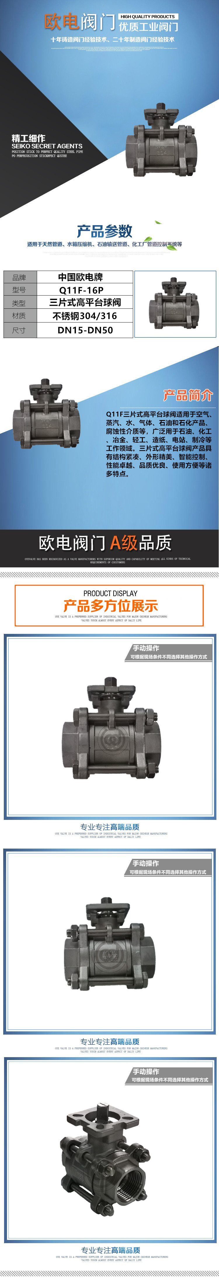 产品详情:三片式高平台球阀