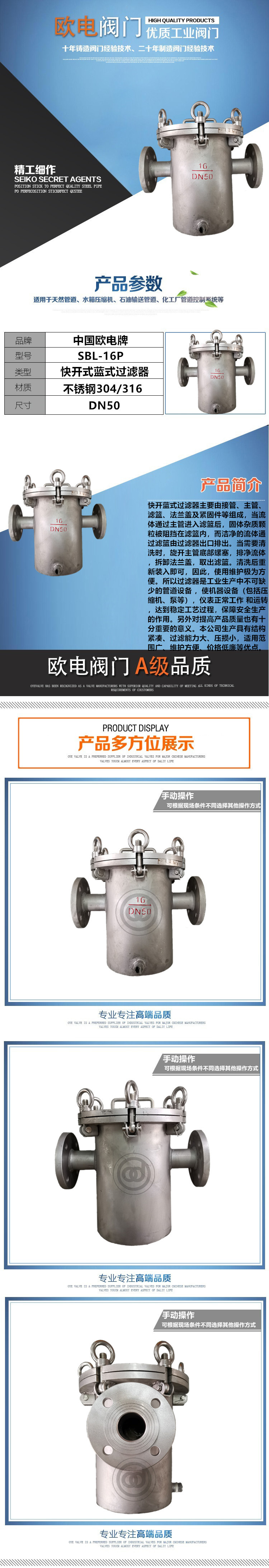快开篮式过滤器是一种小型设备,可以除去液体中的少量固体颗粒,可以保障压缩机,泵,仪器等的正常运行。它已普遍应用于原油,化工,制药,食品,环保等行业,如果串联安装在泵的入口或系统管路的其他部分,不仅可以延长泵的使用寿命。泵等设备,也确保了整个系统的安全。