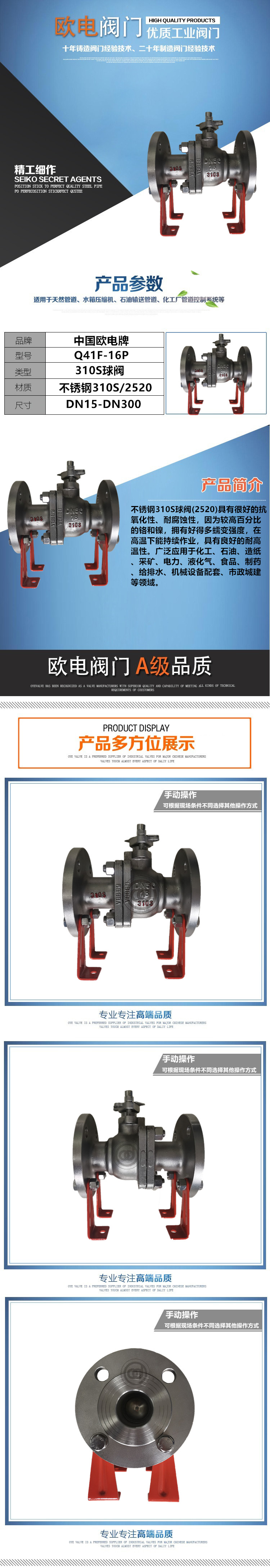 310s不锈钢球阀也称之为2520球阀。其阀体,阀盖,阀杆,球等零件均由奥氏体不锈钢310s(0cr25ni20)铸造或锻造,材质为高铬镍奥氏体不锈钢,在氧化性介质中具有不错的耐腐蚀性,同事具有很高的耐高温性因此,310s不锈钢球阀具有很高的温度机器性能,普遍用以化学工业,航空航天工业中大概1100摄氏度的耐热控制和核燃料后处置装置的腐蚀控制(但该阀是由零件和构件组成,具体的耐高温功效约为700度,温度越高,耐腐蚀性会日渐弱化)。