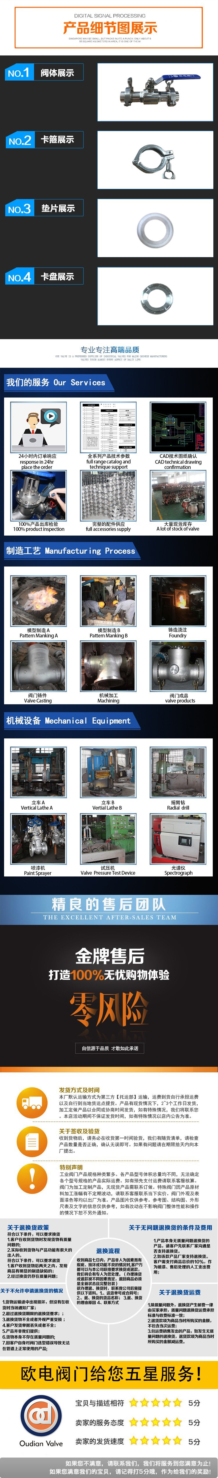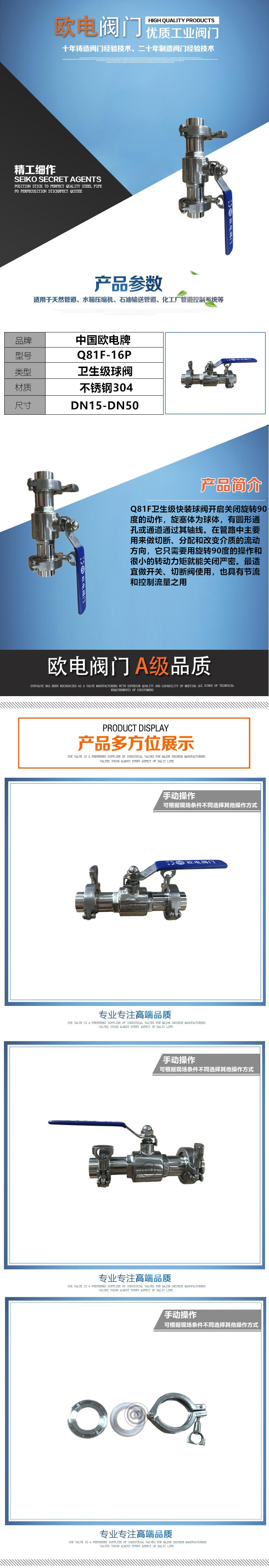 CFQF-3型卫生级球阀是两件式结构,由阀体,接头和两个PTFE阀座构成,并以夹子形式安装。可添加阀座清洁接头以清洁球阀腔和排放它从排水孔。
