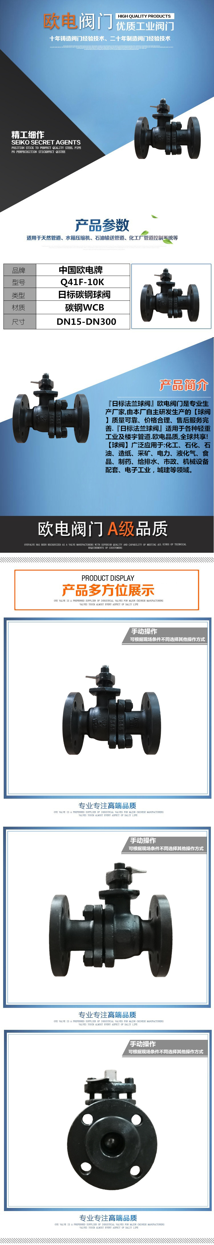 『日标法兰球阀』欧电阀是我厂独立自主开发生产的专业产品【球阀】质量精确,价钱合理,售后服务健全。“日本标准法兰球阀”适用于各种轻,重工业和建筑物管道。欧洲品质,全世界共享![日本标准法兰球阀]普遍用于:化工,石化,原油,造纸,矿山,电力,液化气,食品,制药,给排水,市政,机器装置,电子工业,城市建设等领域。