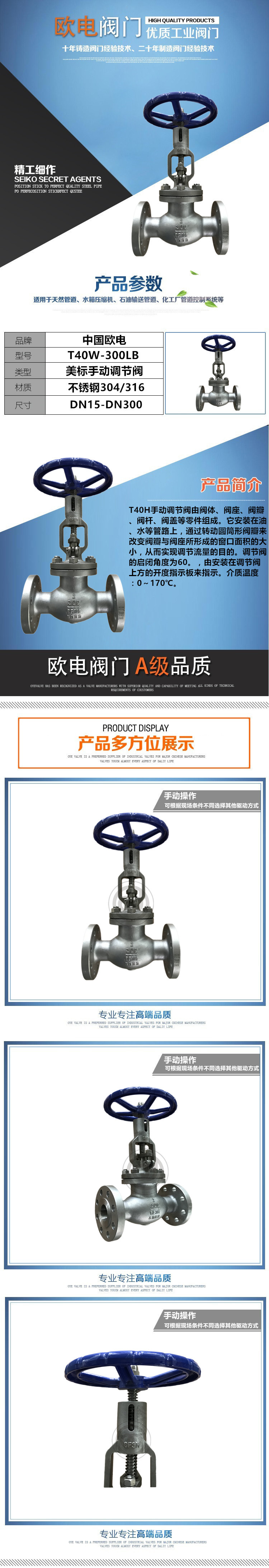 手动调节阀是管道流体输送系统中的控制组件。用于改变介质的通过截面和流动方向。它具有分流,切断,调节,节流,止回,分流或溢流泄压等功能。用于流体控制的阀,从zui简便截止阀到极度繁复的自动控制系统。有很多种类和基准。阀门的公称通径范围从极小的仪表阀到大直径。10m工业管道阀。阀门可用于控制各种种类的流体(例如水,蒸气,原油,天然气,泥浆,各种腐蚀性介质,液态金属和放射性流体)的流量。阀门的工作压力可在0.0013mpa至1000mpa的超高压和工作温度范围内,从-269℃的超低温到1430℃的高温。可通过多种传动方法来控制阀门,例如:手动,电动,液压,气动,蜗轮,电磁,电磁液压,电动液压,气动液压,正齿轮,锥齿轮传动等;它可以在压力,温度或其他形式的传感信号的作用下根据预定要求展开致动,或者在不仰赖传感信号的情形下简便地开启或关闭。阀门倚赖驱动器或自动部门使启闭件抬起并滑动移动,摆动或旋转,以改变流道面积的尺寸来实现其控制功能。