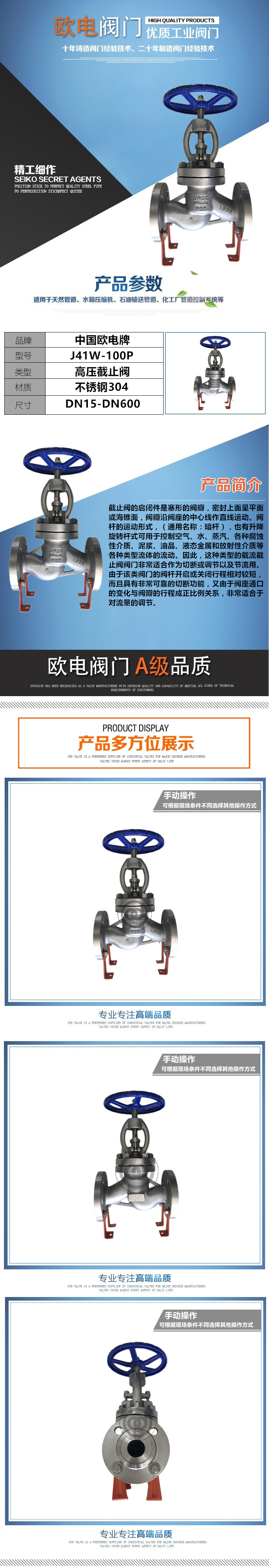 【不锈钢高压截止阀】专业制造商欧电阀门有限公司生产质量准确,价位合理,售后服务优质的J41W/H/Y不锈钢高压截止阀系列产品。为您提供:不锈钢高压截止阀(型号),大小,价位,图表,工作原理)国家大型通用阀门制造商。