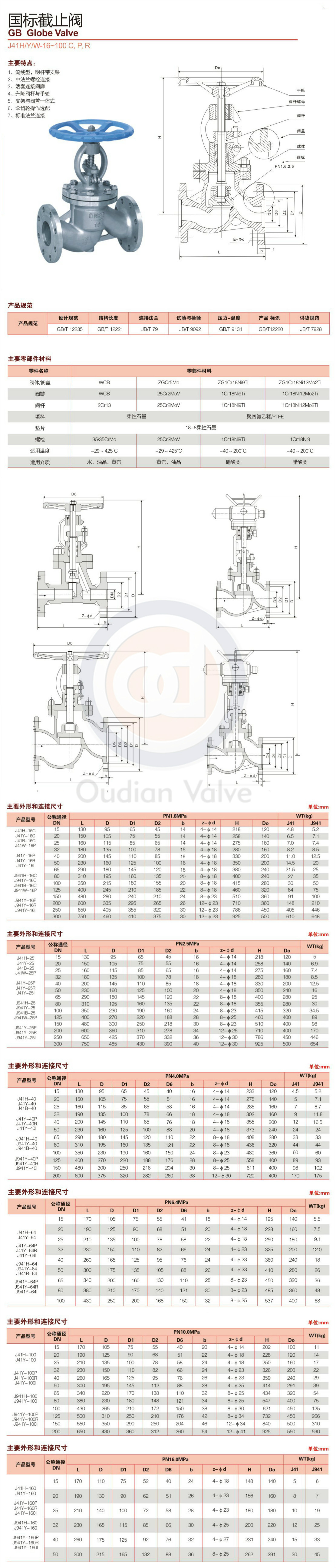 J41H德标截止阀构造法则: