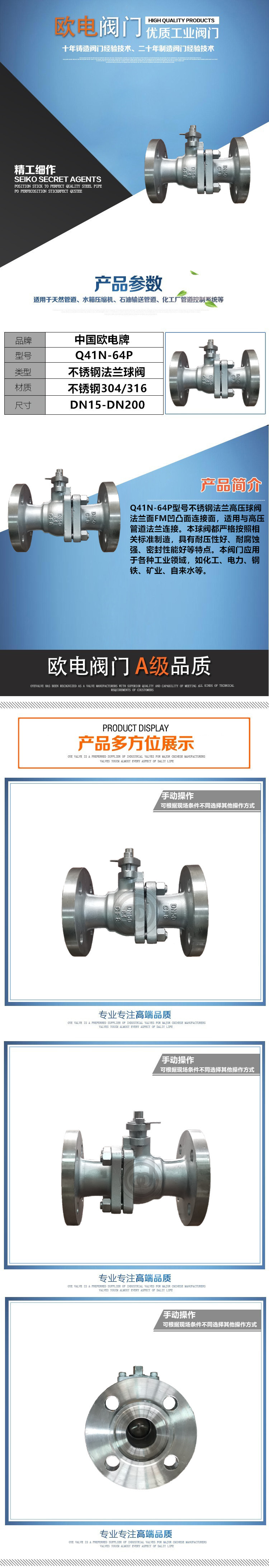 Q41N-64P型号不锈钢法兰高压球阀法兰面RJ油槽环连接面,适用于与高压管道法兰的连接。该球阀严苛按照相关标准化制造,兼具不错的耐压性能,耐腐蚀性能强,密封性能好。该阀用于化工,电力,钢铁,矿山,自来水等各种工业领域。