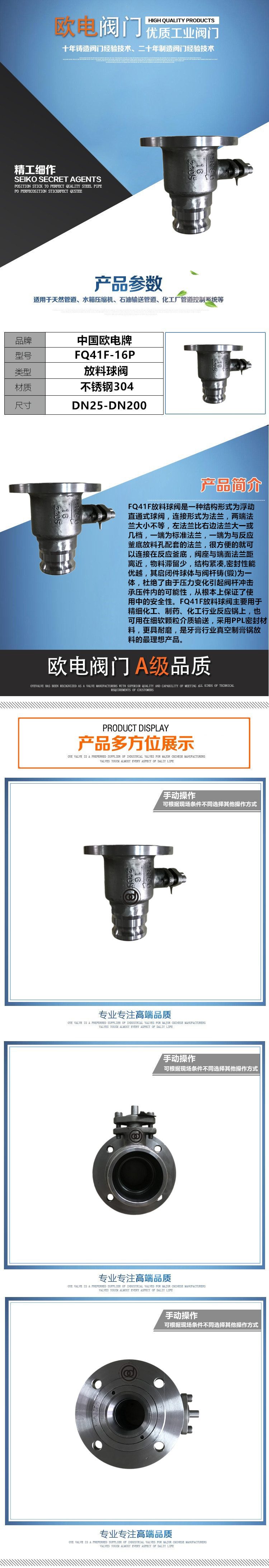 FQ41F快装放料球阀是一种构造形式浮动直通式球阀,连接形式是法兰,两边法兰兼具不同的大小,左法兰比右法兰大一到几步,一端是规范方式法兰,一端是与反应器底部的排放孔相匹配的法兰,可以很容易地连接到反应器底部。阀座相近端面法兰,有着较少的材质滞留性,连贯的构造和上佳的密封性能。其启闭件圆球和阀杆一体铸造(锻造),从而扫除了阀杆因压力变化而冲击承压构件的可能,并从根本上保证了采用的安全性。球阀主要用于精巧化工,制药,化工行业的反应罐中,也可以用于输送微小和柔软的微粒。FQ41F密封材质更耐磨,可用于牙膏行业的真空粘贴罐。*完美的产品。