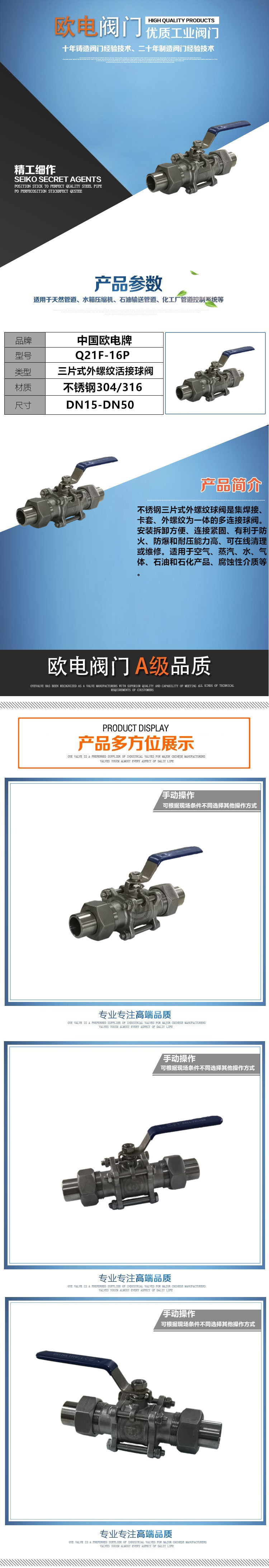 不锈钢三件式外螺纹球阀是集焊接,套圈和外螺纹于一体的多连接球阀,安装和拆卸方便,连接迅速,具有不错的防火,防爆和耐高压性能,可清洗或在线维修。适用于空气,蒸汽,水,天然气,原油和石化产品,腐蚀性介质等。