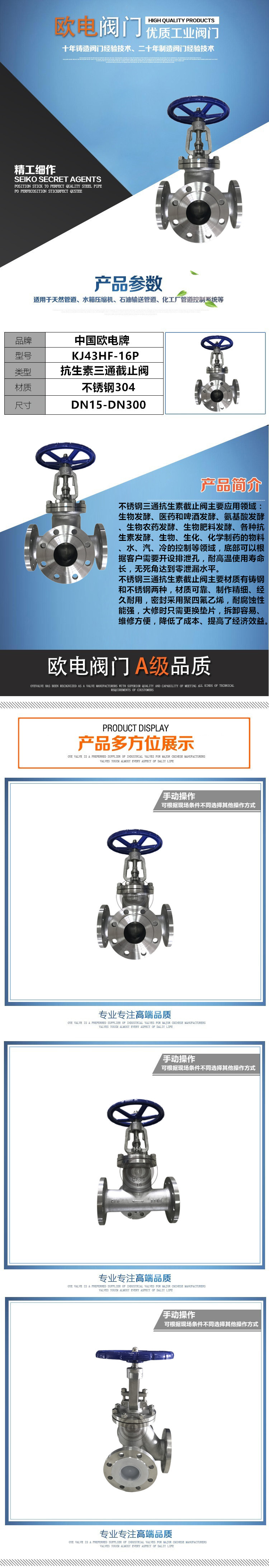 不锈钢三通抗生素截止阀的主要应用领域:生物发酵,医药啤酒发酵,氨基酸发酵,生物农药发酵,生物肥料发酵,各种抗生素发酵,生物,生化,化学制药原材料,水,蒸汽,冷操纵等领域,底部可根据客户需要开有排水孔,耐高温,用到寿命长,无死角,达到零泄漏程度。